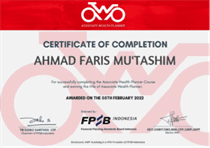 A student of the Development Economics study program, Faculty of Economics and Business, UIN Jakarta, named Ahmad Faris Mu'tashim (Sharia Economics 2020) has successfully passed and is competent in the Associate Wealth Planner (AWP) certification. Faris is one of the administrators of the Sharia Investment Gallery FEB UIN Jakarta who is currently assigned to be the Head of the Public Relations Division.