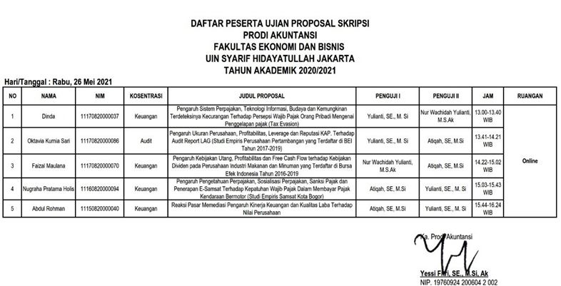 Jadwal Bulan Mei 2021: Seminar Proposal Skripsi dan Sidang Skripsi