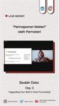 Pada 15 – 17 Juli 2021, Departemen Penelitian dan Publikasi Ilmiah HMPS Ekonomi Pembangunan telah melaksanakan kegiatan Bedah Data. Acara diadakan selama tiga hari dan diselenggarakan melalui Zoom Meeting dengan peserta sebanyak 139 peserta di hari pertama, 101 peserta di hari kedua, dan 88 peserta di hari ketiga. Bedah Data diadakan dengan tujuan untuk melatih mahasiswa dalam menganalisis kejadian-kejadian di bidang ekonometrika menggunakan software khusus, yaitu EViews. Dengan ini, mahasiswa diharapkan dapat mengindikasi faktor-faktor yang mempengaruhi indikator keberhasilan sebuah perencanaan, khususnya di bidang ekonomi dan pembangunan.