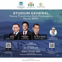 Sabtu, 19 Juni 2021 Fakultas Ekonomi dan Bisnis mengadakan kegiatan studium general secara daring melalui zoom meeting dan youtube. Kegiatan studium general ini mengangkat tema "Strategi Transformasi Bank Pembangunan Daerah". Tema ini menjadi suatu hal yang menarik mengingat kewajiban untuk spin-off unit usaha syariah (UUS) bank induk konvensional yang harus diputuskan maksimal bulan Juli 2023, sebagian besar UUS saat ini merupakan UUS yang dimiliki oleh Bank Pembangunan Daerah.